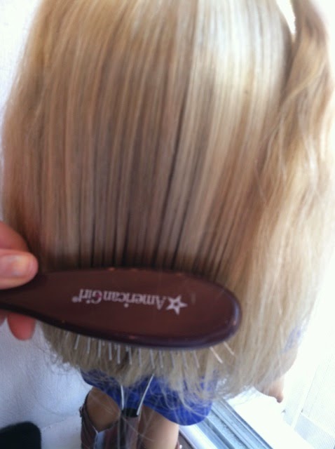 This week I will be doing the Cowgirl Ponytails on Kailey, if your doll is tired of doing the same braids or ponytails when she wants to go horse back riding or to the rodeo this is the perfect hairstyle that combines both the braids and the ponytails. I would recommend this hairstyle on dolls with center parts or dolls with hair like Mckenna. So lets get started for this hairstyle you will need a: brush, 4 hair bands, and (optional) ribbons.